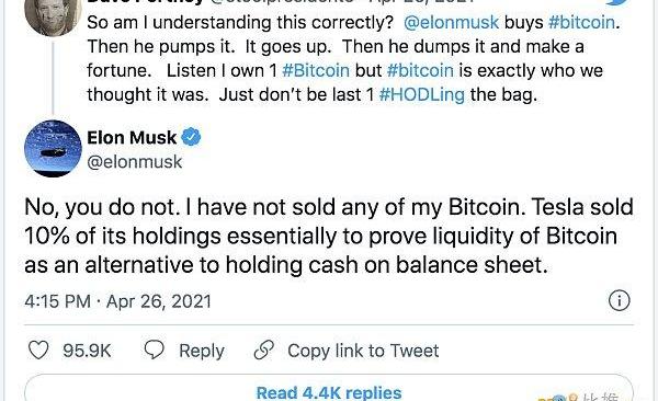 特斯拉在2021年第一季度出售了其持有的10%的比特币;根据首席执行官马斯克的说法,这是“证明比特币的流动性作为资产负债表上持有现金的替代品。”