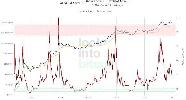 数据来源:https://www.lookintobitcoin.com/charts/mvrv-zscore/