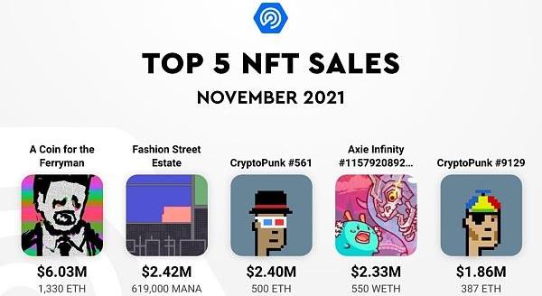 例如,有两块虚拟土地成为11月登记的最高NFT销售额之一。Decentraland的FashionStreetEstate以618,000MANA或242万美元的价格售出,而AxieInfinityGenesisPlot以550ETH或233万美元的价格售出。