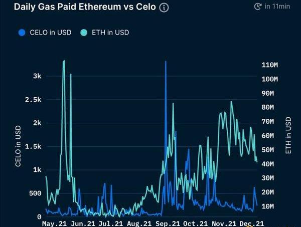 随着时间的推移,在CeloVSETH上支付的每日总gas