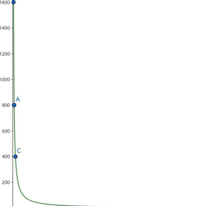 当前价格对应点A(10,800),若一流动性提供商,尝试在P=进行做市。对应的点B(5,1600),P=320。点C(20,400),P=20
