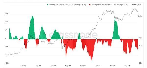 因此,我们可以通过观察交易所比特币余额的净变化来辅助短期的一个行情预判: