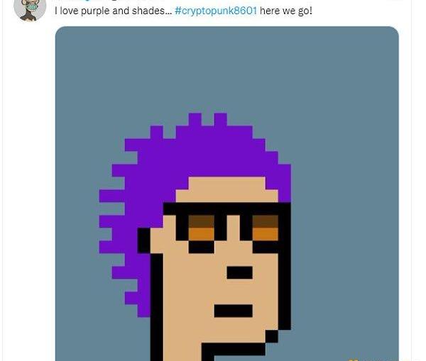 2021年11月8日,林俊杰花费125?ETH买入8601号CryptoPunks。