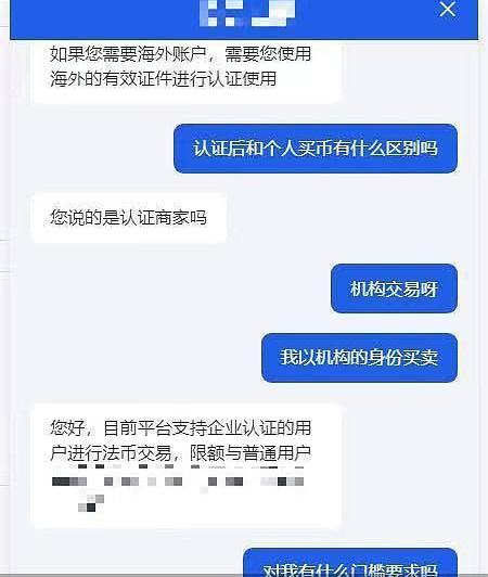 对于注册海外公司参与交易一事,北京商报记者进一步向交易所进行求证,并得到了肯定答复。以一家头部交易所的回复为例,其表示“若用户需要海外账户,需要用户使用海外的有效证件进行认证使用,且目前平台支持企业认证的用户进行法币交易”。