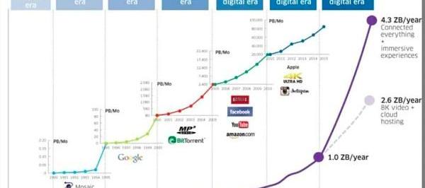 全球数据产生量走势图,来源:www.slideshare.net/PerryLea/the-20-rule-how-the-seismic-growth-of-data-has-always-and-will-always-outgrow-telcom