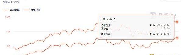 Ethereum链上DeFi锁定资产前十排名及锁仓量,数据来源:Debank