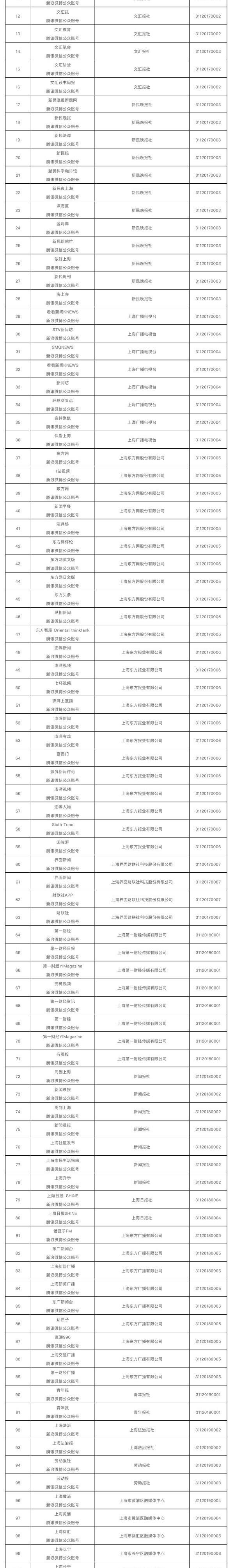 另,上海属地内的上海观察者信息技术有限公司、上海基分文化传播有限公司由国家互联网信息办公室颁发《互联网新闻信息服务许可证》,准许其从事互联网新闻信息转载、传播平台服务。上海热线信息网络有限公司由国家互联网信息办公室颁发《互联网新闻信息服务许可证》,准许其从事互联网新闻信息转载服务。