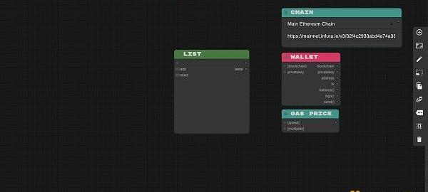 在互联网工作的运营中,使用脑图比较多,eth.buidl很像脑图版的编辑工具,是极为模块化的。可以帮助开发者编辑逻辑以及直接开发web的DApp。