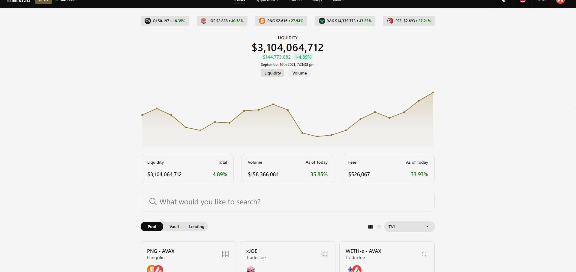 Markr是基于Avalanche网络中的所有项目的收益耕作聚合器。该平台提供网络中的DeFi平台的排名,按存入的总价值排序。它还在其相同的界面上添加了排名中项目的所有收益耕作的可能性。