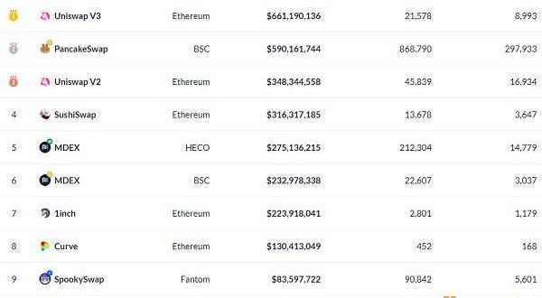 过去24小时去中心化交易所的交易量数据来源:Debank