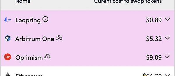 尽管推出不到两周,Arbitrum已经开始看到巨大的吸引力:网络上锁定价值已经达到9600万美元。此外,我们已经开始看到Layer2的诱人潜力,因为即使人为地减少了容量,与以太坊L1相比,Arbitrum上代币交换的平均Gas费也降低了12倍。?