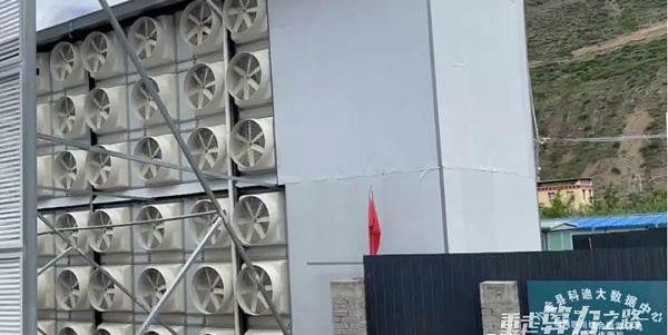 出了丹巴县城,拐弯处的水电站旁,办公楼的围墙内、房顶上满布了散热风扇,造就了“空中矿场”的景象。电厂楼房的窗户也加上了风扇,周围横七竖八建了八座机房,空间利用率被发挥到极致。