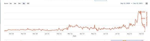 据OpenSea数据显示,进入到9月以来日交易量逐渐走低,在9月9日仅有5个成交量,平均成交价格为104.52ETH。相较于峰值8月23日354个,缩水98.5%;从成交额来看,相较于8月28日的历史峰值成交额43871ETH缩水98.8%,可以说是断崖式下跌。