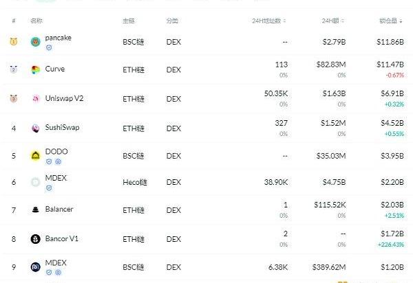 过去24小时去中心化交易所的交易量数据来源:Debank