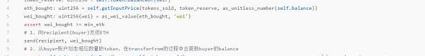 Uniswap交易对合约中的交换函数,原理基本一致,即保证交易池内两种币数量的乘积恒定,这些函数会先调用getInputPrice方法获取可以购买的另一种代币数量: