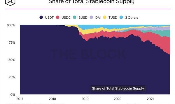 这是我们在稳定币上看到的动态。尽管对其声誉感到担忧,但Tether的USDT的巨大流动性使其能够在该市场上保持主导地位,尽管最近有所下降。