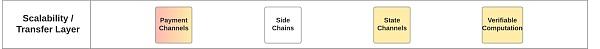 -侧链:允许转移任何状态。由与主链兼容的其他区块链完成。要求侧链能够与主链上的计算层对话。还要求锁定资金以促进纠纷。侧链可以是中央或私人管理的基础设施。示例:用于EVM的PoA网络、用于EVM的Loom网络、用于EVM的PlasmaFramewok。应该注意的是,Plasma内置了额外的要求,以便为用户提供安全地将其资产提取到计算层的保证。通过这种方式,它的价值主张更类似于状态和支付渠道。