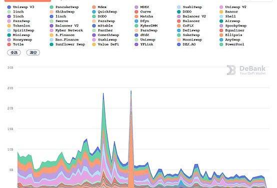 2、过去24小时去中心化交易所的交易量:31.3亿美元