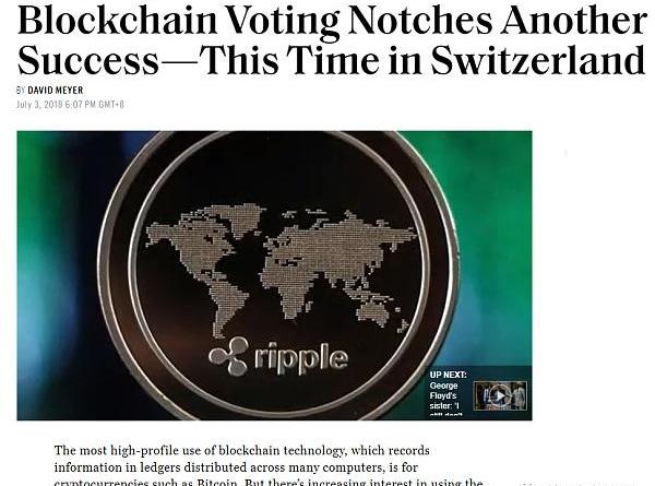 《区块链投票又一次成功——这次是在瑞士》详见:https://fortune.com/2018/07/03/blockchain-voting-trial-zug/