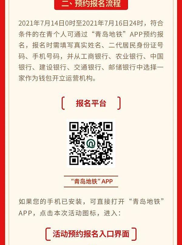 本次活动将通过抽签方式确定中签人员,2021年7月18日12时起,可在“青岛地铁”APP中自行查询抽签结果。