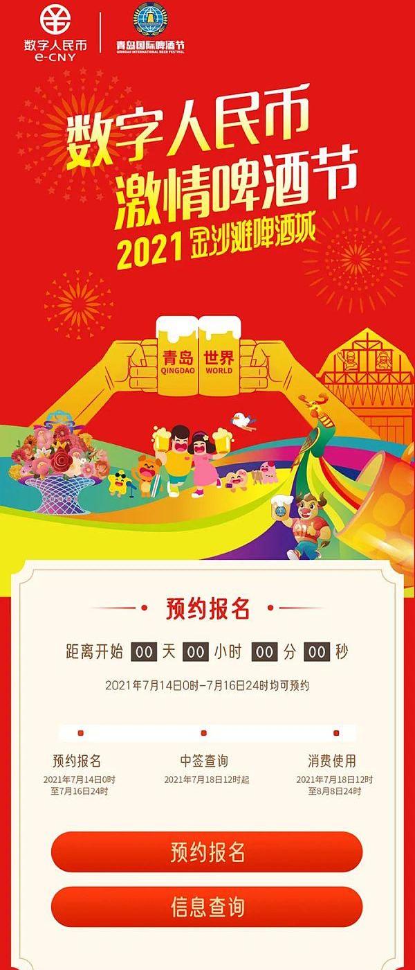 近期,青岛市人民政府联合中国人民银行青岛市中心支行举办“数字人民币激情啤酒节”红包活动。活动由西海岸新区出资,报名入口将于2021年7月14日0时正式开启,至7月16日24时关闭。