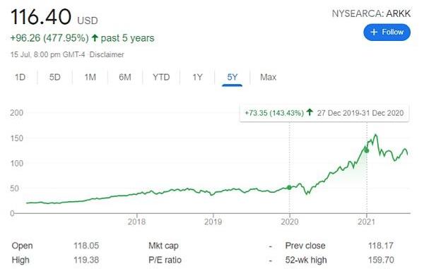 2020年为了应对疫情,全世界许多央行实施低利率政策导致科技公司的估值跟着水涨船高。而主打这类投资的Ark基金也因此受益,在2020年全年回报率达到143%。其创始人CathieWood也被誉为“牛市女皇”。