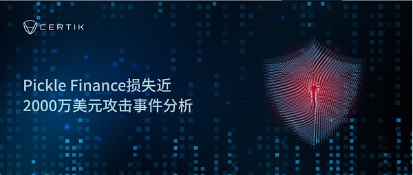 北京时间11月22日凌晨2点37分,CertiK安全研究团队通过Skynet发现Pickle Finance项目遭到攻击,共损失约1975万枚价值近一亿三千万人民币DAI。