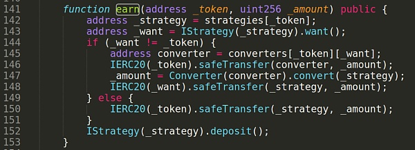 ControllerV4智能合约中的earn()函数