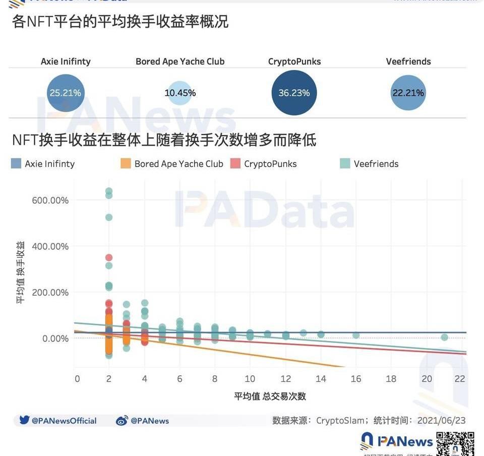 4个NFT平台的最近多次交易的NFT数量约占20.27%,平均换手收益率约为23.53%。但在整体上,换手收益随着换手次数的增加而减少,其中第二次换手交易买方获得较高收益的可能更大。