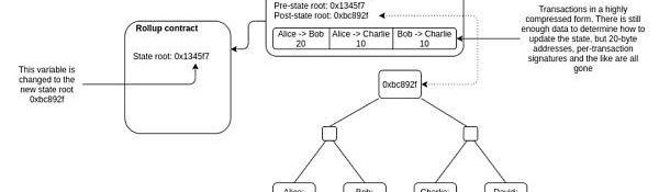 在链下计算压缩每批的交易数据,并将压缩计算得到的状态根传回rollups上。