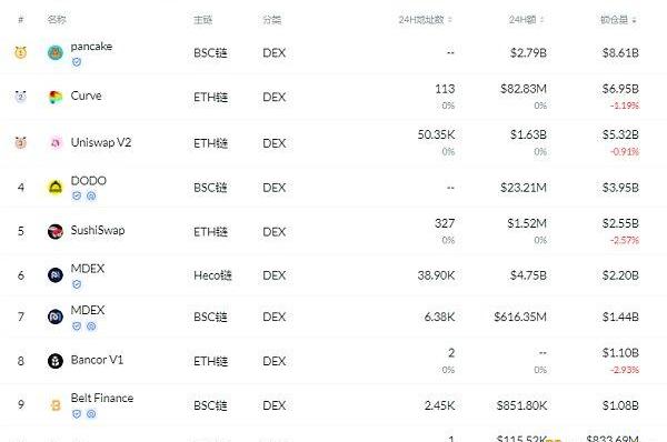 交易量排名前十的DEX排名来源:DeFibox