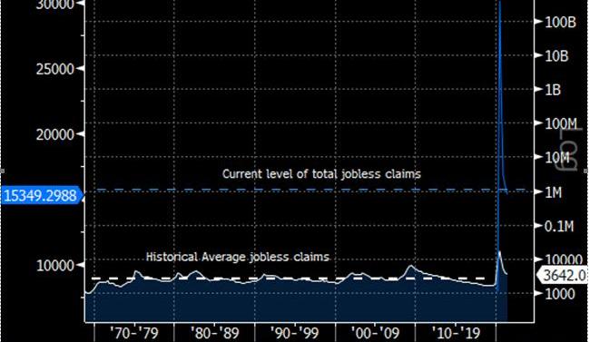 下面的图表2则只是为了强调当前,我们的就业水平在历史背景下的位置。尽管国家仍有大约1535万人在申请失业救济,但GDP的增长是多么令人难以置信。相比之下,在COVID危机之前,大约有160万人申请失业救济,而当时的GDP为21.8万亿美元。