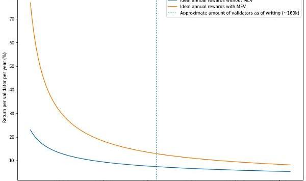 例如,在100,000验证者里,每个验证者的区块提议的平均数是每年26次,而运气最差的1%验证者获得的提议机会最多是15个区块,运气最好的1%是39个区块。
