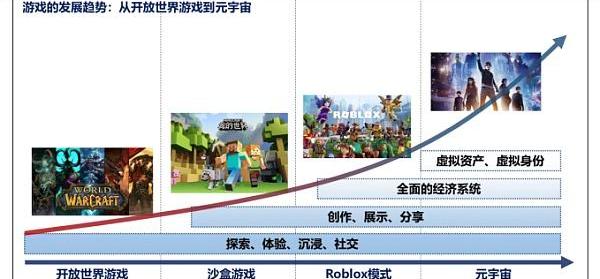 从1981年第一个开放世界游戏《创世纪1》开始,游戏开发者就试图打造一个虚拟世界,开放世界游戏让电子游戏从单纯的竞技、博弈,上升到追求一种对虚拟世界的沉浸感。沙盒游戏在此基础上,更着重于让玩家亲手打造世界。Roblox在沙盒游戏的基础上,引入了全面的经济系统和开放生态,让用户在虚拟创作中花费的精力,能转换为真实的收益。而元宇宙将在虚拟资产和虚拟身份上更进一步。