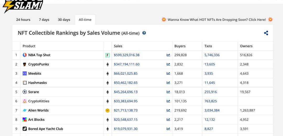 2021年初,著名动画《瑞克和莫蒂》的创作者之一JustinRoiland在NiftyGateway上发售其NFT作品;当时NBATopShot的日成交额已达到100万美元。