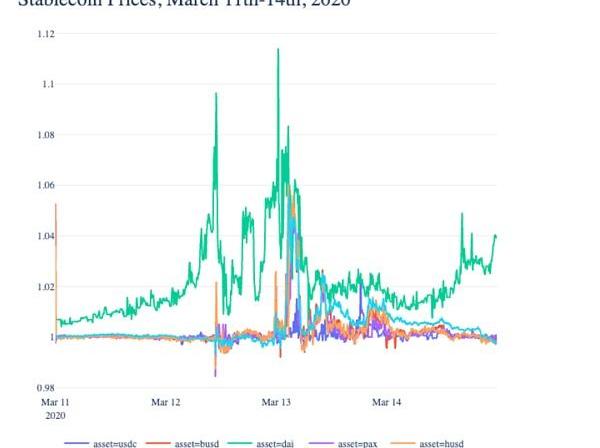 相比之下,在2020年3月的暴跌中,稳定币的价格飙升至1.05美元以上,之后的几天里价格一直处于高位。虽然DAI在2020年3月期间涨到远高于其1美元的价格目标,但由于MakerDAO的一些改进,这次它保持了更接近锚定的价格。