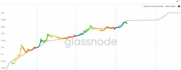 比特币价格走势和S2F曲线基本吻合,来源:Glassnode