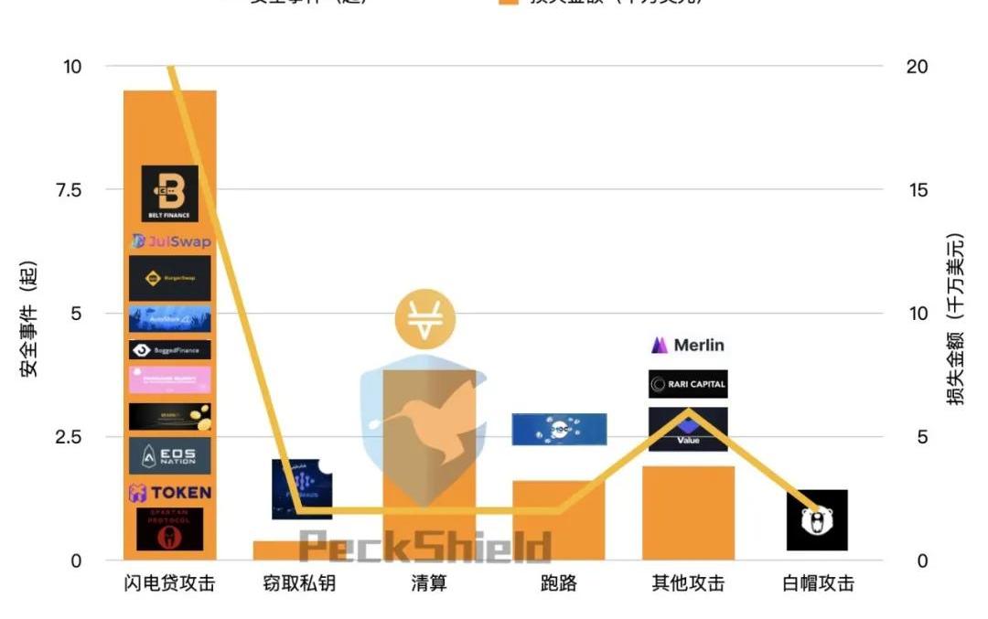 据PeckShield「派盾」统计数据显示,2021年5月共计发生25起与DeFi相关的安全事件,损失金额约2.8亿美元,其中,闪电贷攻击约11起,在BSC链上发生的与DeFi相关的安全事件15起,在以太坊链上的3起,在EOS上的1起。