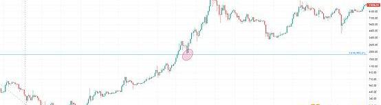 17年牛市进程,价格最高涨至3000美金附近,然后迎来大幅调整,一路砸至1800美金附近,也是处于1.618支撑区域,价格见底反弹阳线反包继续牛市进程,直至到牛顶20000美金一带。