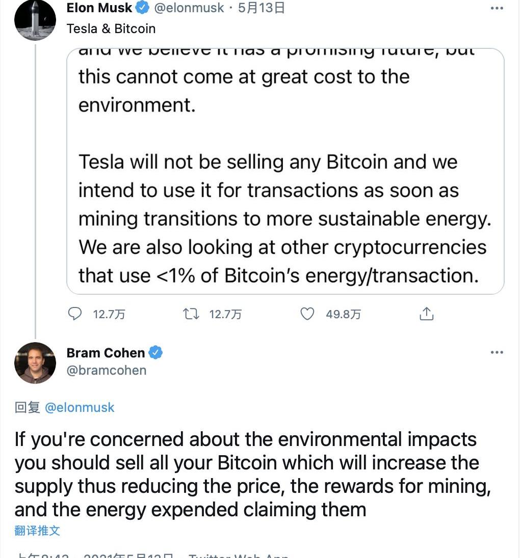 Chia创始人Bram则更加直接地进行了反驳。针对埃隆·马斯克称特斯拉暂停使用比特币一事在推特评论称: