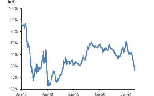 Panigirtzoglou认为,这种份额下滑某种程度上得益于机构对以太坊兴趣的增加,同时某种程度上也是与个人投资对其他加密货币的需求所推动。这与2017年12月的比特币市场出现的泡沫有一些相似之处,当时比特币的市场份额从55%降至35%。