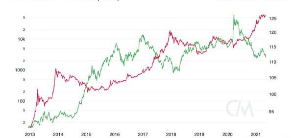 美元在3月期间走强后,在4月期间走弱,并在上周再次下挫。许多投资者现在预计货币宽松政策的持续时间将比之前想象的更长,因为有迹象表明经济仍在复苏。从历史上看,BTC在美元走弱的时候会上涨。在短期内,这对BTC来说可能是个好消息。