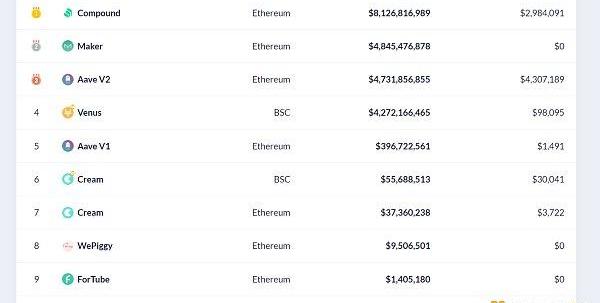 排名前十的借贷平台排名来源:Debank