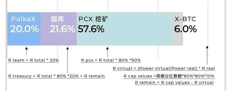 挖矿收益将20%分配给PolkaX挖矿,21.6%给国库,57.6%给PCX挖矿,6.0%X-BTC挖矿。