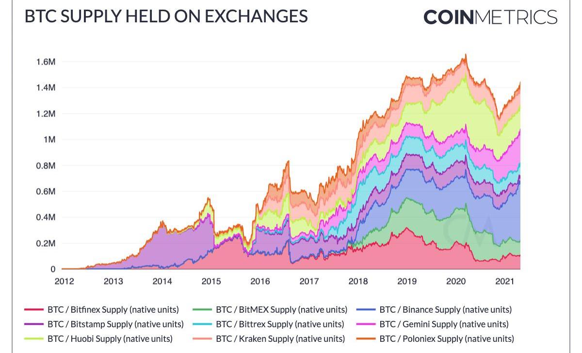 96.?目前至少有149万BTC被持有在主要中心化交易所。