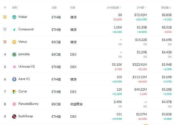 锁仓量排名前十的借贷平台排名来源:DeFibox