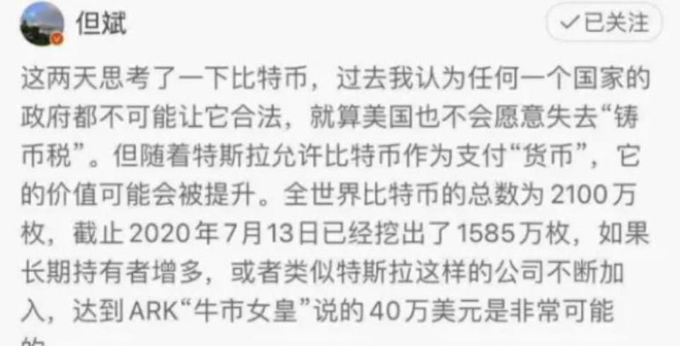 2月18日,中国投资界知名人士但斌在微博透露,他买了1%的比特币ETF基金,并且说:虽然有点晚,但想通了就践行!当然买的比较少,希望保持一下对新生事物的好奇心!