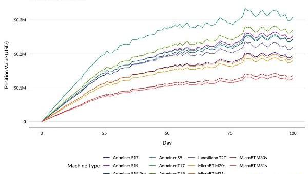 在这种情况下,做多比特币的矿工盈利惊人。在模拟期间,运行S9的矿工投资基本上翻番,S19矿工也能获得可观的利润。