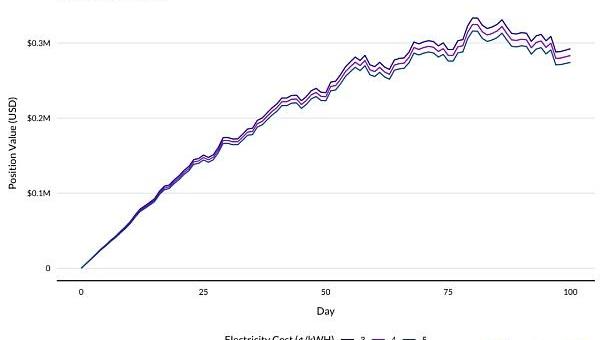 在这种情况下,相比每天卖出比特币,保留比特币仓位的利润要高得多即使电价很高也是如此。考虑到比特币价格的快速升值,这是有道理的。