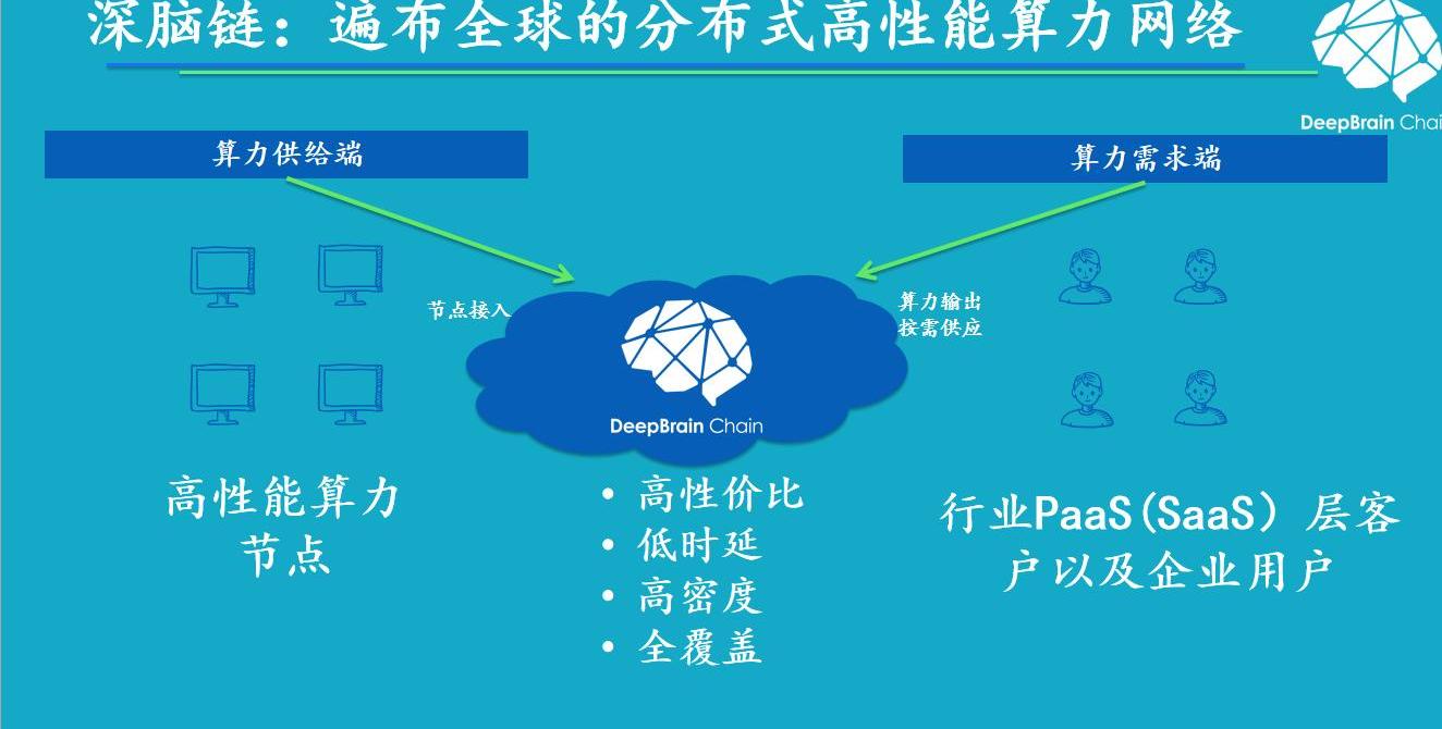 深脑链就是通过独特模式,把算力的供给端和算力需求端结合起来。矿工通过提供高性能的GPU算力去满足刚才说的四大市场的应用,从而实现非常高的性价比。而且深脑链的GPU资源来自于全球各地,分布非常广泛,能够非常好地满足类似于云游戏这样的,高速低延时的市场。云巨头做云游戏市场必须在全球各个地方甚至每个城市建数据中心,和传统以CPU为基础的云计算有非常大的区别,传统CPU倾向于建大型的数据中心,管理起来比较方便。但是这在人工智能时代、高性能时代是没有办法满足的,所以要发生一次革新才行。